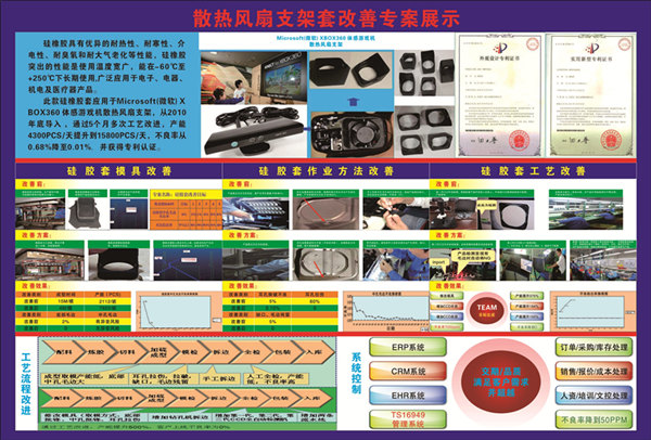 此款硅胶橡胶套应用于Microsoft XBOX 360体感游戏机散热风扇支架,从2010年底导入,经公司从模具、工艺及作业方法等改进,大大提高了产能及降底产品不良率。